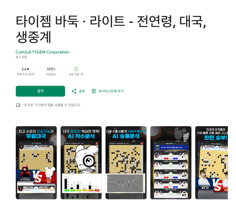 - 타이젬 바둑 검색: 앱 스토어 혹은 구글 플레이 스토어에 접속하셨다면 "타이젬 바둑" 을 검색하도록 합니다. 검색 결과에서 타이젬 바둑 앱을 찾아 클릭하도록 하겠습니다.